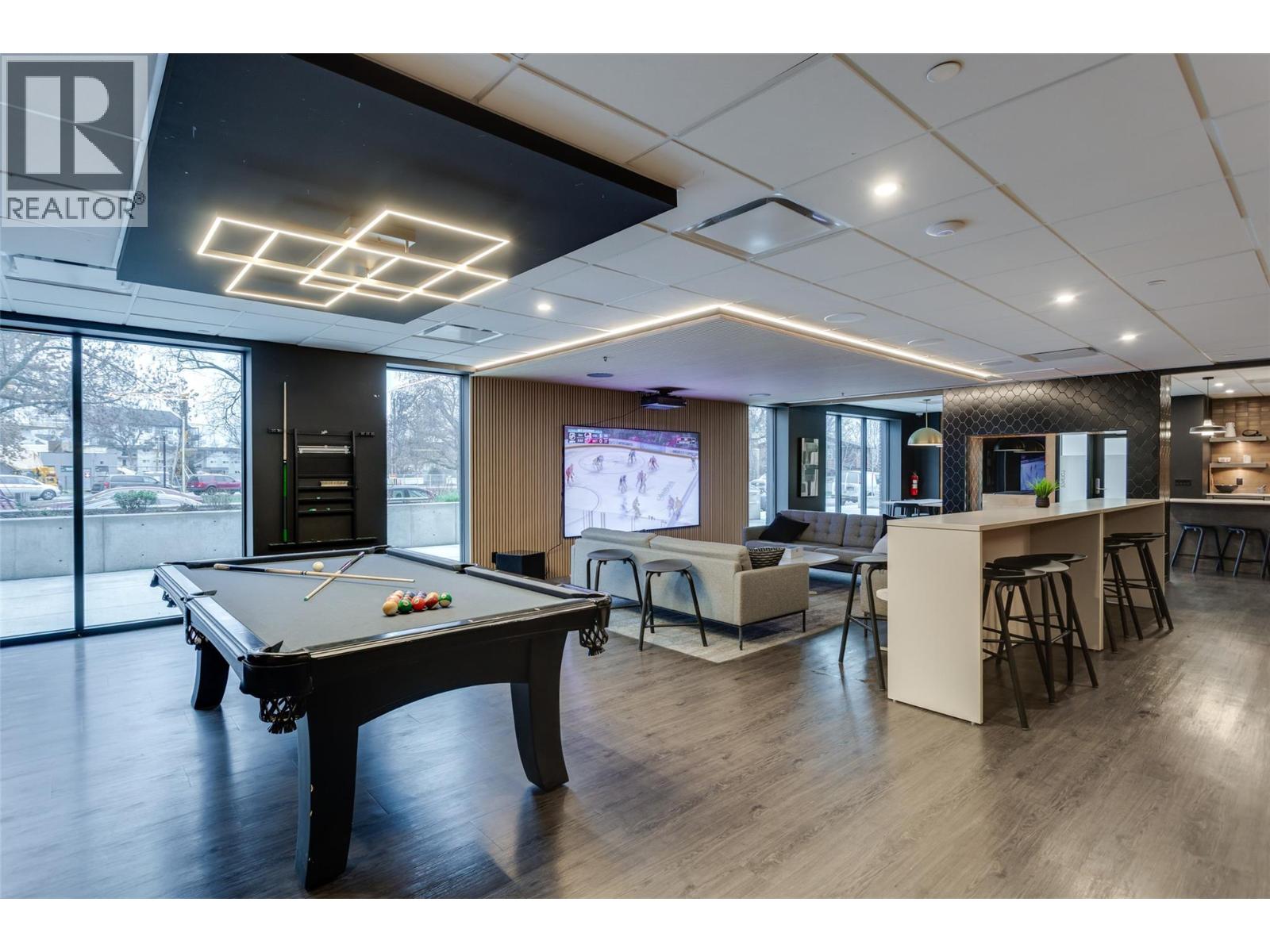 New Smart-Suite at Five Crossings – Urban Living Redefined. Welcome to Five Crossings, one of Kelowna’s most amenity-rich and lifestyle-driven buildings. This thoughtfully designed new smart-suite maximizes every inch of space with a Queen Murphy bed, built-in storage, home office, media cabinet, genie table, and a $22,000 furniture package—perfect for modern urban living or a high-performing investment. GST Paid. The sleek galley kitchen features built-in appliances, push-to-open cabinetry, and a heat pump for efficient heating and cooling. With no age restrictions and pet-friendly bylaws (2 cats or dogs, no size limits), this home offers exceptional flexibility for first-time buyers, students, professionals, and investors alike. Five Crossings delivers true resort-style amenities, including a state-of-the-art fitness centre, co-working space, dog wash, bike storage and repair station, shared garden plots, and a stylish residents’ lounge with a full kitchen, golf simulator, pool table, projection screen, and fireplace. The sixth-floor rooftop features a yoga/zen lounge, BBQ area, covered outdoor dining with fireplace, multiple fire pits, and stunning city and mountain views. Ground-level amenities include a bocce court, dog run, MODO car share, and EV charging. Ideally located across from a park and just steps to Capri Shopping Centre, restaurants, and transit, with easy access to UBCO & Okanagan College 16 mins, downtown 8 mins, and KGH 8 mins. Book your showing today!