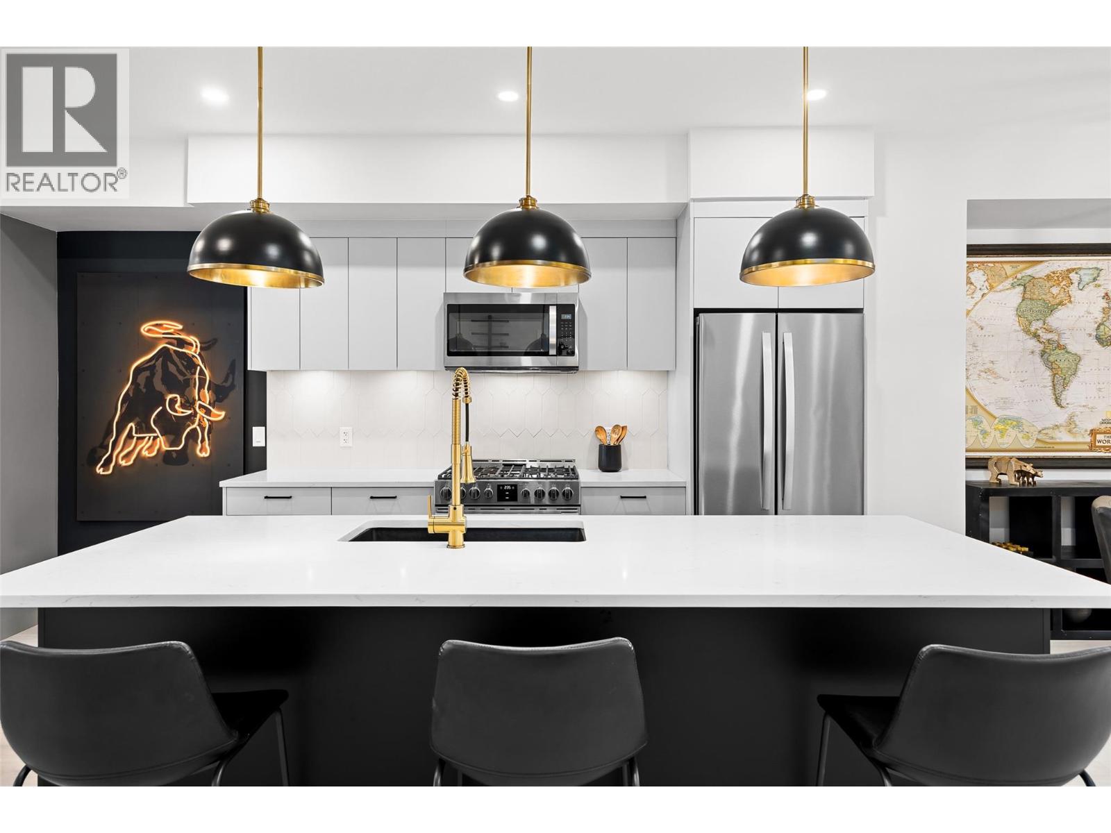 $75K in updates elevate this modern 3 bed/ 3 bath townhouse in The Nest at Findlay, ideally tucked into a quiet area of Rutland North with future development planned nearby. The open-concept main level features updated flooring, a statement kitchen island unique to the unit, upgraded lighting and plumbing fixtures, added blinds for privacy, and a gas range that anchors the kitchen as a true gathering space. The home showcases a sleek, masculine colour palette throughout and a thoughtful three-level layout with living spaces on the main, all bedrooms on the upper floor, and direct access to the attached double-car garage below - complete with EV chargers. On the upper level, the spacious primary bedroom offers a walk-in closet and a beautifully upgraded ensuite with heated floors, complemented by two additional bedrooms and a full bath. This newer build is ideally located close to transit, the highway, and the airport, blending quiet residential living with everyday convenience. Opportunities like this don’t last - contact our team today to book your private viewing today!