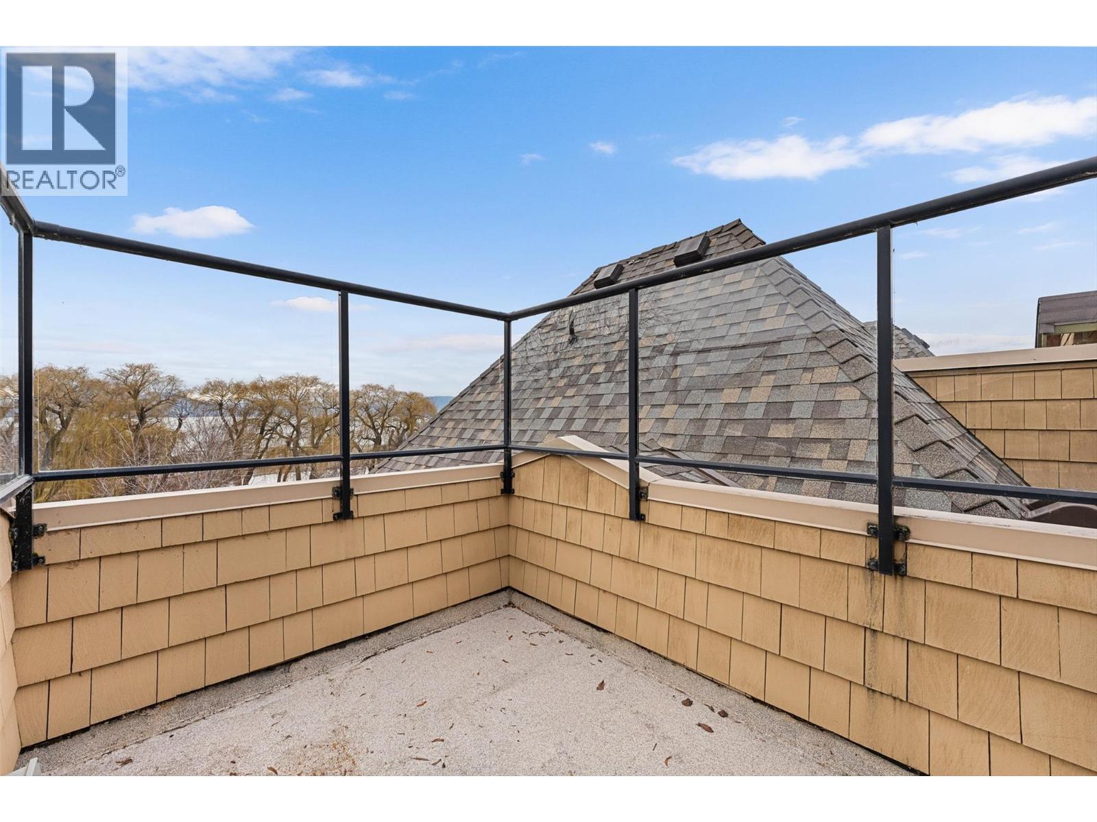 A modern, beach-inspired townhome in Lower Mission’s sought-after Mission Shores, this extensively updated residence offers lock-and-leave ease with resort-style lakefront living. Just steps to the beach, pool, and shared boat slip, enjoy views of Mission Creek and Okanagan Lake from bright indoor spaces and multiple outdoor retreats. The main level showcases new tile flooring, vaulted ceilings, and an open-concept design connecting the sleek high-gloss kitchen with dining and living areas. Italian quartz countertops with full-height backsplash, upgraded stainless appliances, generous island, and hidden pantry anchor the space, while double doors open to an expanded lake-view deck with glass railing, power awning, non-skid tile, and gas BBQ hookup. A private courtyard entry, guest bed with 4-piece ensuite, powder room, and smart storage complete the level. Upstairs, custom engineered hardwood and wood blinds carry a cohesive look throughout. The lakeview primary retreat features a private patio, walk-in closet, and spa-inspired 5-piece ensuite with heated floors, soaker tub, and walk-in shower. A second vaulted bedroom with Juliette balcony, full ensuite, and laundry adds everyday comfort. A private rooftop deck with lake and mountain views sets the scene for long Okanagan evenings. Recent upgrades include LED lighting, fresh paint, reconfigured living space, new hot water tank, and forced-air heating—minutes from the Eldorado Hotel, beaches, trails, cafes and shopping.